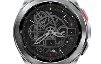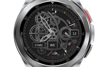 Многослойный циферблат-скелетон с цифровой индикацией числа, дня недели и шагов. Анимированный маятник и семь шестерёнок с разной скоростью вращения. Две дополнительный аналоговые стрелки справа показывают уровень заряда и пульс (середина шкалы соответствует 75 ударам в минуту). Маленькая внешняя белая стрелка показывает время суток (вверху - полдень). Так же есть отдельная 30-секундная стрелка. Три тап-зоны: календарь, параметры пульса и будильник. Русского языка и цветовых схем нет. AOD есть (последний скрин).