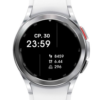 Циферблат как бы разделён на несколько частей и имеет разделение информации по зонам для удобства считывания информации. Сверху вниз: Уровень заряда, погодный виджет, день недели, число, часы (12/24), минуты, температура воздуха, вероятность осадков, секунды, миллисекунды, счётчик шагов, пройденное расстояние в километрах, количество потраченных калорий, пульсометр, шкала прогресса шагов до цели и декоративная шкала миллисекунд. Четырнадцать цветовых схем, шесть тап-зон (будильник, календарь, параметры пульса, сообщения, настройки и параметры аккумулятора). Экран AOD есть (последний скрин).