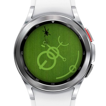 Циферблат на тему внеземных цивилизаций. Про круги на полях знают многие, а если не знаете - почитайте. Очень увлекательно. Итак. Человечек (назовём его так) в центре экрана своей головой показывает текущий час, а внешний символ - минуты. Вокруг руки существа находится индикация уровня заряда и работает по принципу шкалы прогресса. Вертолёт анимирован и своим хвостом показывает текущую секунду. Тень от вертолёта не жёстко привязана к нему, а смещается относительно самого вертолёта в зависимости от его положения в текущий момент. Цветовых схем и тап-зон нет. AOD есть.